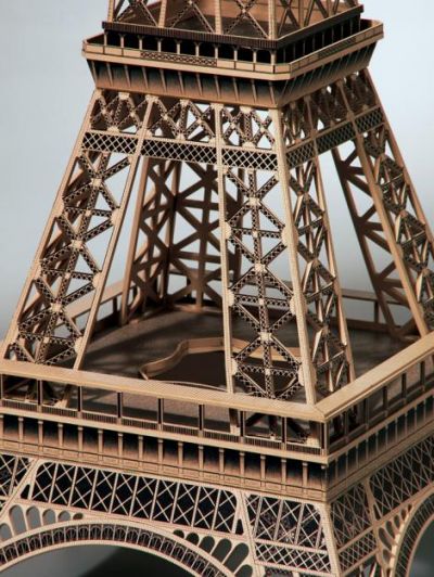 Architectural Signage, Inc., in St. Louis, began fabrication of the display by scanning an intricate paper model of the Eiffel Tower into Adobe Photoshop and re-sizing the image to a 6-foot final height. Vector paths of the artwork were created along all parts to be routed.