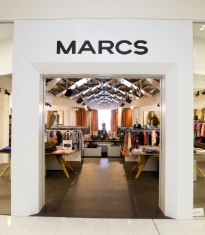 a9c61e6eacd618365bc27d7dac0cb771_f216“The crux of the Marcs concept was to create a dynamic, neo-modern, effortless interior language,” said Simpson. “The key components are simple veneered panels — which provide a completely flexible merchandising system — solid oak tables, a family of linoleum and Alucobond® plinths, free-standing metal racks and, of course, the signature ceiling. Each ceiling panel is formed from folded Dibond and suspended in formation to create a dynamic and bespoke design.”