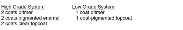 Spray coating normally offers the best all-around results with smoother, more uniform coverage. Curtain coating is not recommended due to a bubbling action created in the paint. The bubbling is caused by an air displacement and solvent flashing situation when applying a high volume of paint so quickly. This problem may be minimized by specifying flat pigment and slower solvents in the paint or by using water base paints. The paint system may vary depending on the individual requirement or desirability.