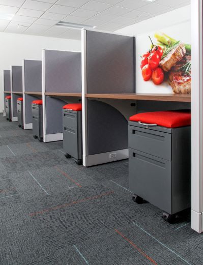 “We loved the way digitally printed graphics looked on FiberMate,” said Mike Malone, partner, Green Clean Designs, who recommended FiberMate when he learned that Hardridge loved using graphics in her office designs. “She thought it was a pity that we couldn’t do graphics in the telemarketing cubicles and keep the project green. I’m the used cube guy. I knew that FiberMate and its glossy white surface would work. Julie had the vision to see it.”