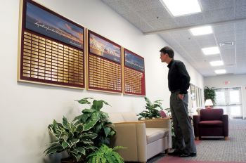 Mickey Moore, president and designer, Mickey Moore Design Associates, of Charlottesville, Va., designed the displays as part of a multi-year interior design update begun in 2002. PhotoWorksGroup Inc., a large-format graphic solutions provider based in Charlottesville, fabricated and installed the displays, often turning to Sintra graphic display board as a preferred rigid substrate for graphics mounting.