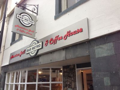 31047a4c970b9d0d85fde9686c43f24c_f564The Bar Metro in Keswick, UK is a relatively new café-bar that was hoping to create a brand identity inspired by both the London Underground and the 1950’s American retro diner. The designers at H&H chose brushed silver Dibond because it was the “…best looking out of all the samples we received from different companies.”