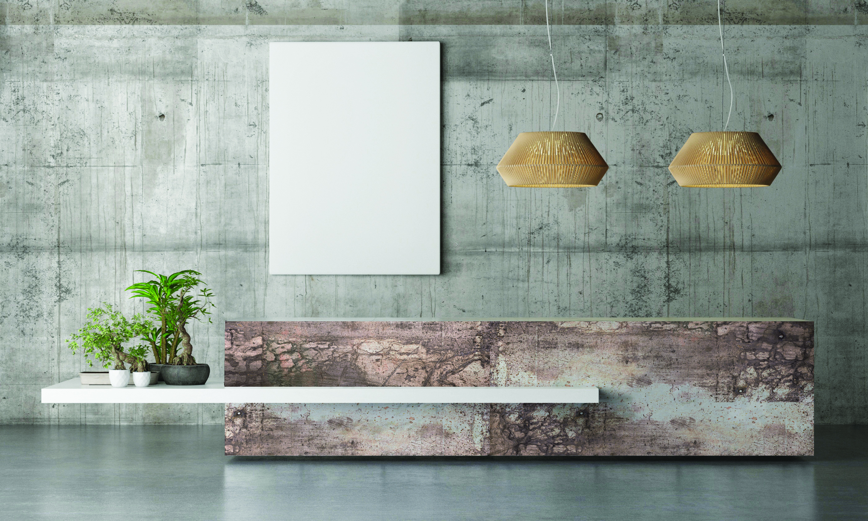 The Urban-Industrial Look. Inspired by raw materials from the industrial age and the evolution of urban landscapes, these finishes combine depth, texture and color to truly transform any interior space. From an abstract accent wall to a contemporary kitchen backsplash, they offer a chic and modern appearance that’s easy to install and maintain at a fraction of the cost of conventional materials. MONARC Urban-Industrial Look panel finishes include Concrete Blizzard, Concrete Storm, Aged Iron, Wrought Iron, Carbon Hot-Rolled Steel, Cosmic Hot-Rolled Steel, Blackened Steel and Macchiato Steel.
