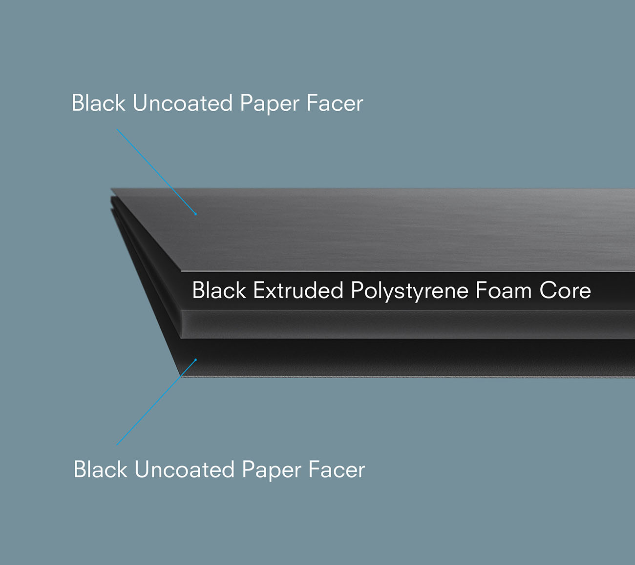 | 3/16” - Black Uncoated Facers - Black Foam | 48” x 96”; Custom Sizes Available (MOQs apply) |