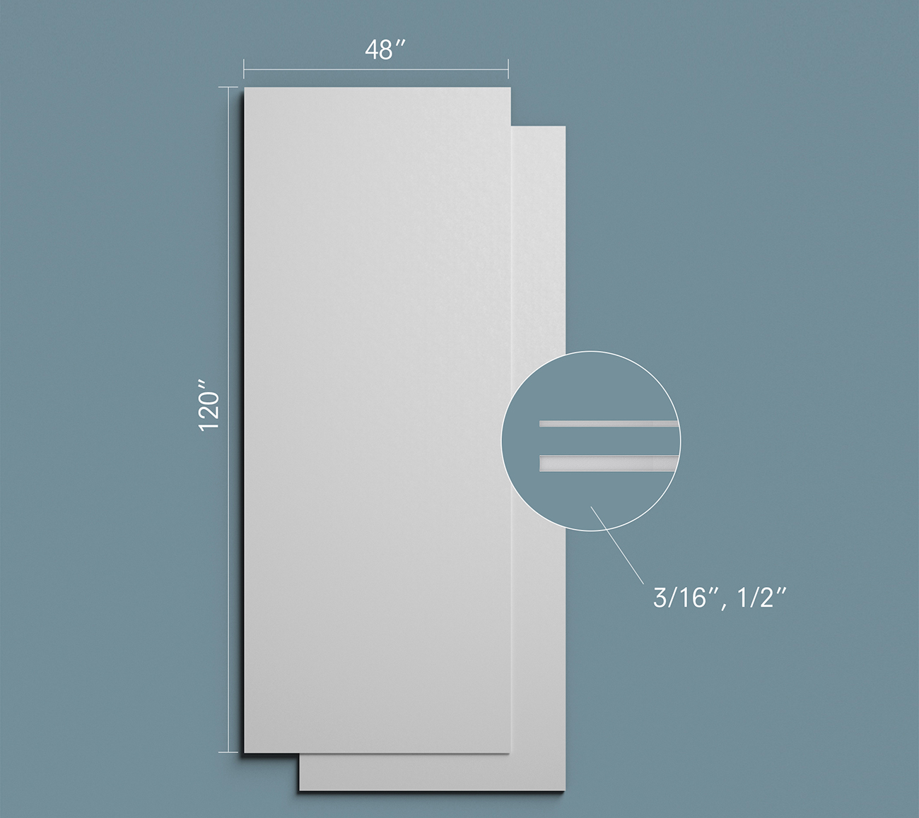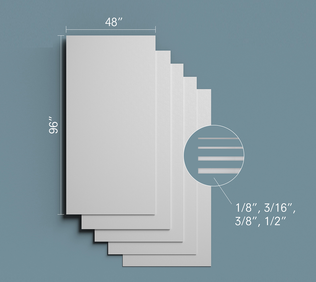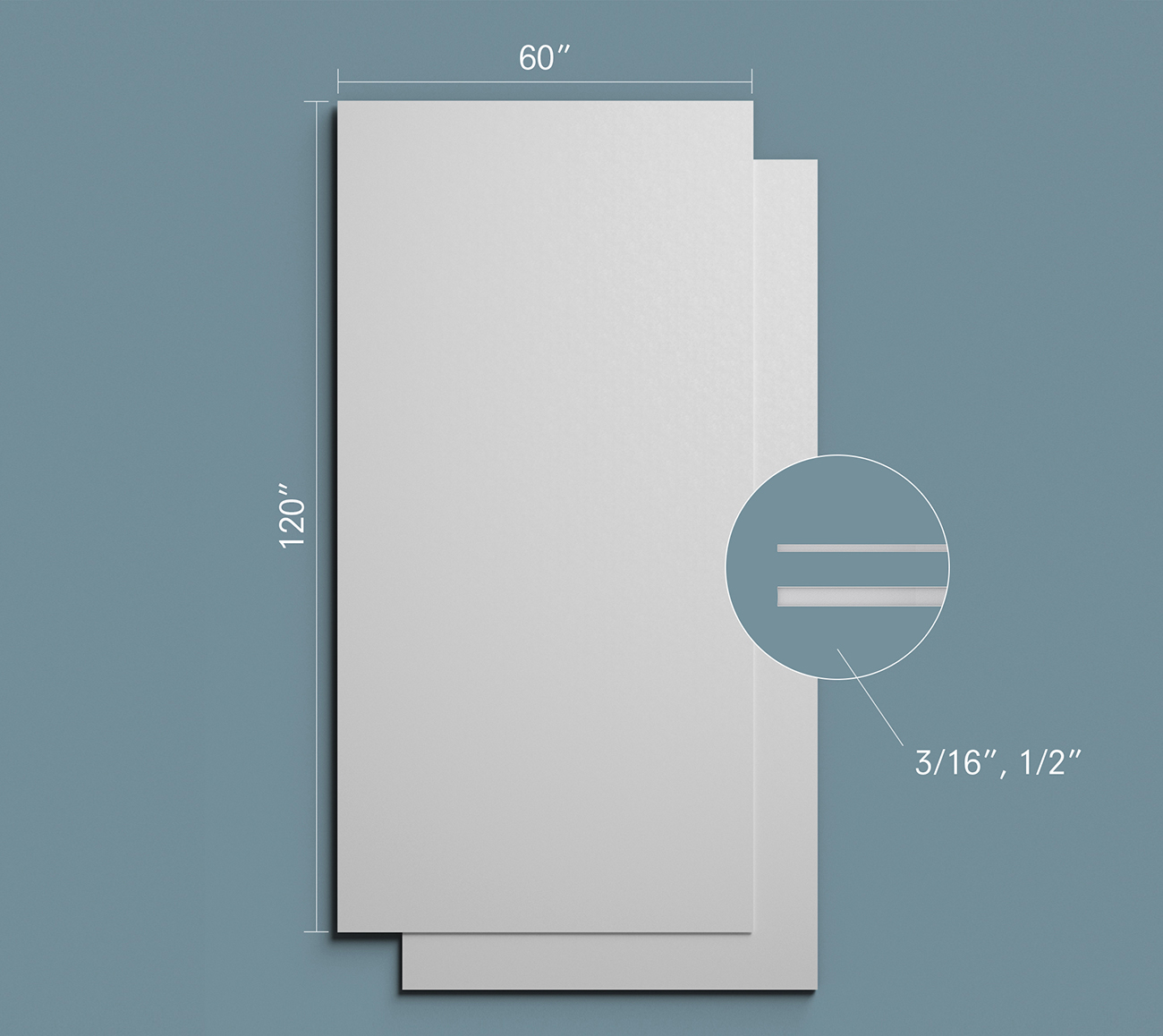 | 1/2” - Bright White Clay-Coated Facers - White Foam | 48” x 96”; 48”x120”; 60”x96”; 60”x120” |