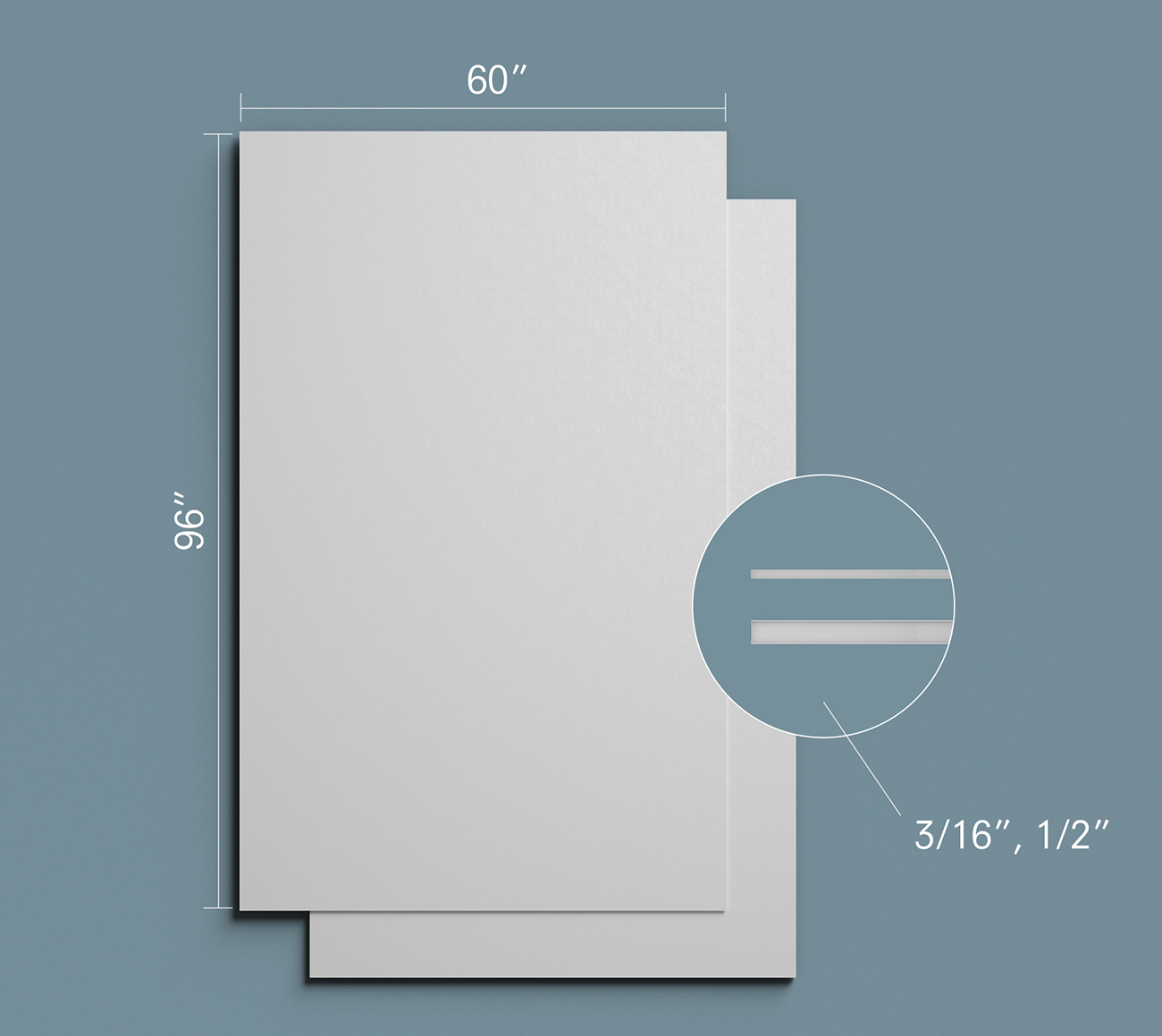 | 3/16” - Bright White Clay-Coated Facers - Black Foam | 48” x 96”; Custom Sizes Available (MOQs apply) |